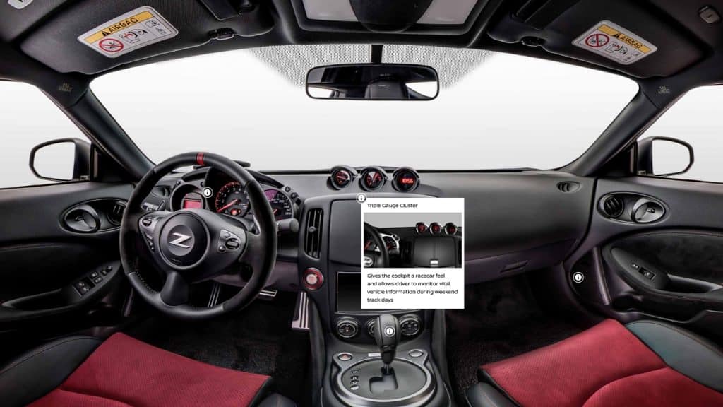 Each vehicle that is virtually on display has clickable ‘hotspots’ to instantly show more information about the car and its key features. ‘Exterior hotspots’ lead to a carousel view of the main vehicle information and leads to the vehicle’s landing page. ‘Interior hotspots’, meanwhile, have been customized to lead to a 360-degree view inside the vehicle, additionally providing more digital hotspots to deliver information on car specifications.