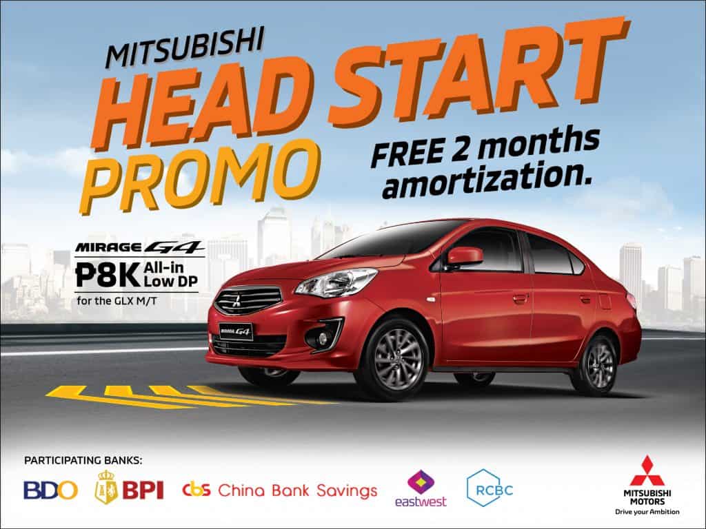 The Mitsubishi Mirage G4 is part of the ongoing Mitsubishi Head Start promo that provides a free 2 months amortization fee at an 8k all in low DP.