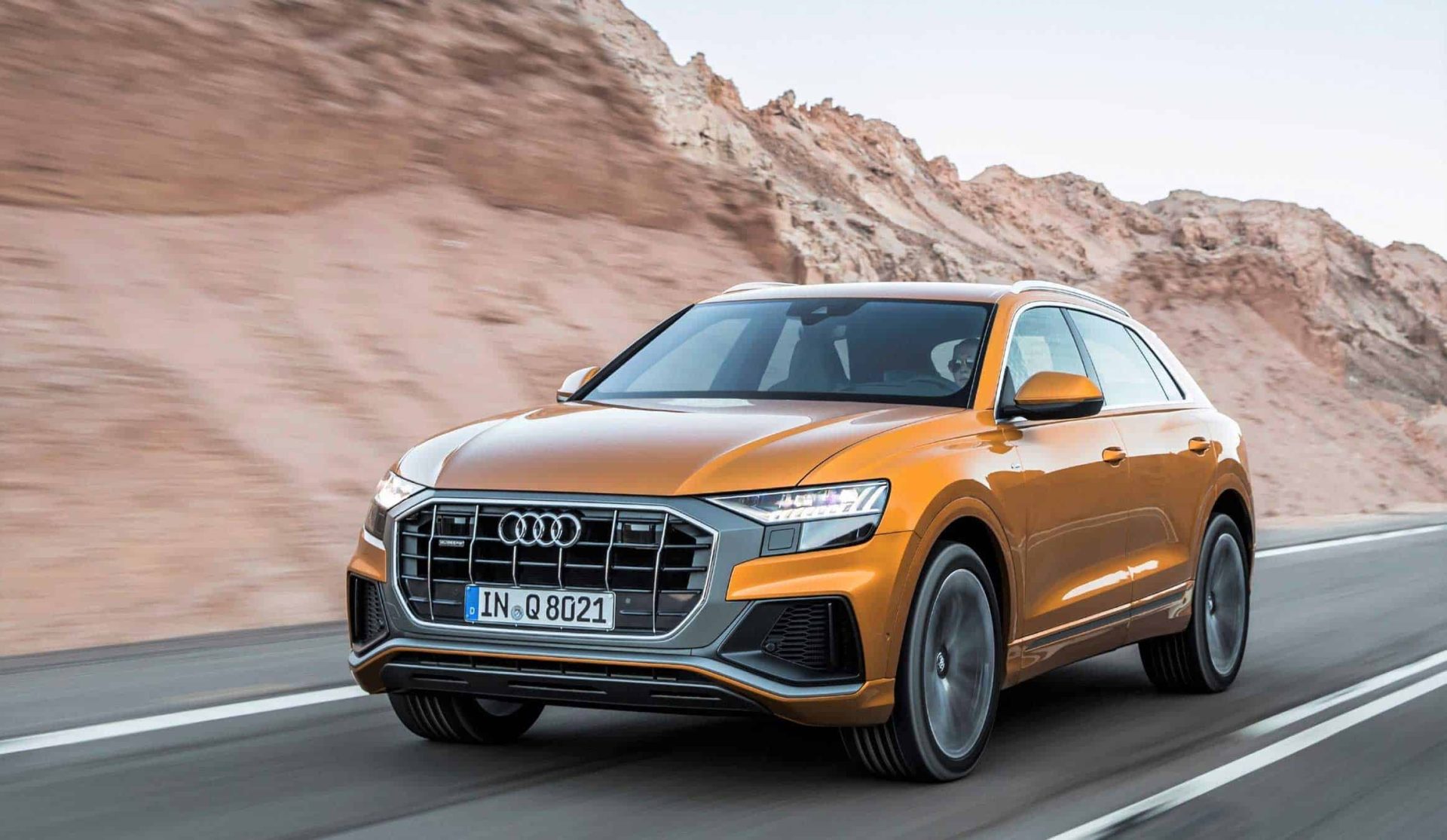 Powering the 2020 Audi Q8 is a turbocharged, 3.0-liter, six-cylinder TFSI gasoline engine that produces 340hp and 500Nm, and is also equipped with a mild hybrid system. Matched to the power plant are an eight-speed tiptronic transmission and quattro full-time all-wheel drive. Standard on the 2020 Audi Q8 are 21-inch graphite gray alloy wheels with a five-arm star design. Also fitted as standard are an adaptive air suspension with damper control (which can adjust the vehicle’s ride height depending on the driving situation and the driver’s preference) and the Audi drive select dynamic handling feature.