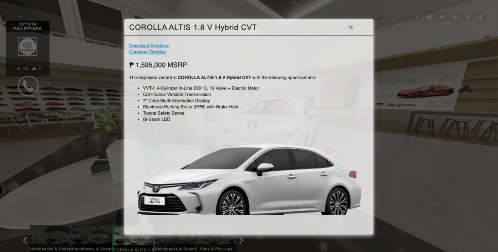 Toyota Motor Philippines makes car-buying easier as more options become available in its recently launched Virtual Showroom. Customers may now tour the actual showroom as its virtual counterpart takes the actual dealership experience online and makes more vehicle information accessible anytime, anywhere.