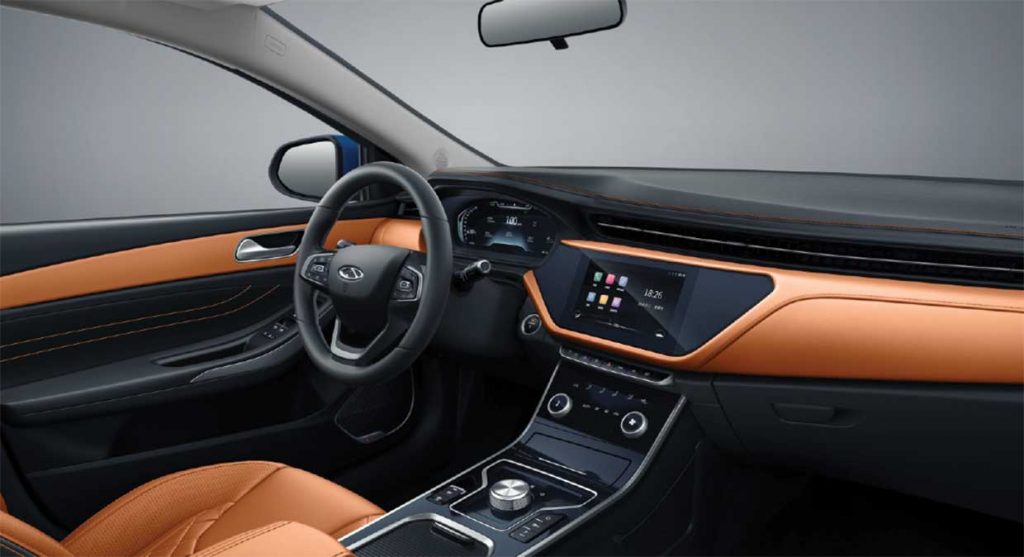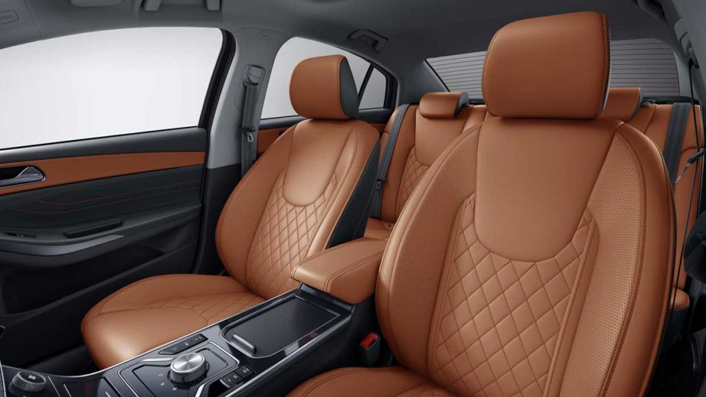 Inside the spacious and finely crafted two-tone interior, you’ll find a large nine-inch touchscreen infotainment system on the central part of the ergonomically designed dashboard. Below it is an eight-inch touch panel for the climate control, similar to high-end luxury vehicles. Unlike most cars which uses lots of plastic in the interior, 65 percent of the Chery Arrizo 5e’s cabin is covered in leather.