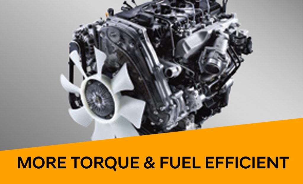 Payload capacity also gets a boost with a longer shuttle rear body. Now 11.8 feet (3600 mm) long, the extended wheelbase and longer cargo bed can accommodate an 11-foot rear deck, which translates to a 9% or 220-kg increase in load capacity, giving it a 1.8- ton payload capacity. The ground clearance is lower at 165 mm, making loading and unloading much easier. In addition, the load-sensing proportioning valve helps adjust weight distribution, keeping the vehicle stable and secure while on the move. At the same time, its compact cab dimensions, narrower wheel tread, and impressively small 5.8 turning radius enable it to quickly make its way through “tight” road conditions.