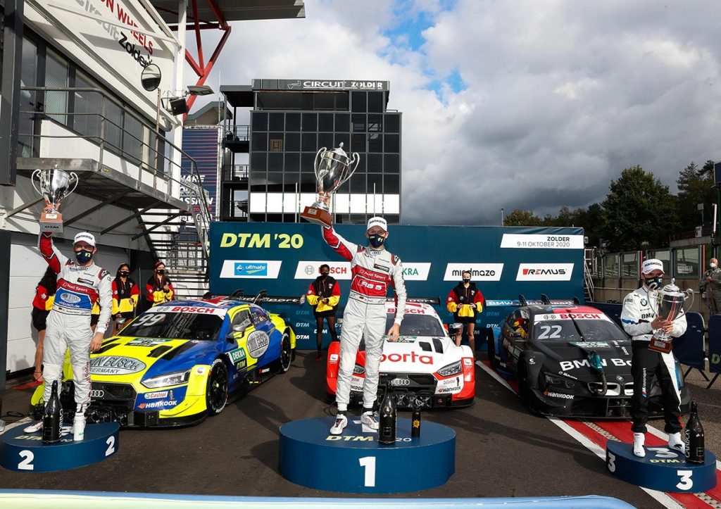 Three top Audi Sport team drivers aboard Audi RS 5 DTM race cars will decide the 2020 DTM drivers’ title among themselves after they have secured a 1-2-3 finish at the prestigious German touring car competition round in Zolder, Belgium, held October 10. Audi also won the second DTM race in Zolder the following day.