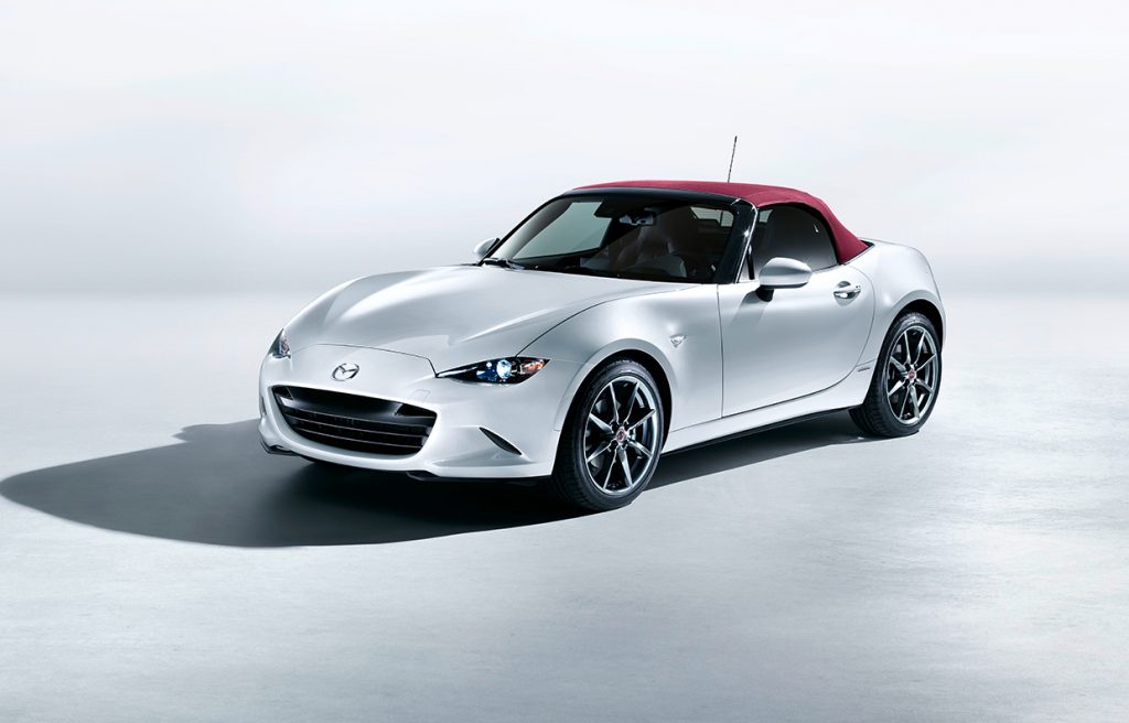 At least you can rush to your nearest Mazda dealer without having to worry about what color to pick. That’s because all 100th Anniversary Special Edition models sport a Snowflake White Pearl finish with red seats and floor carpets.