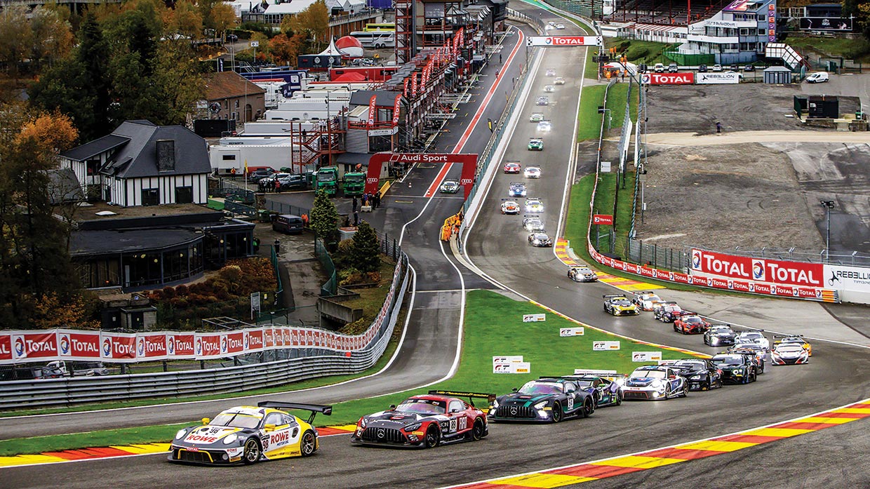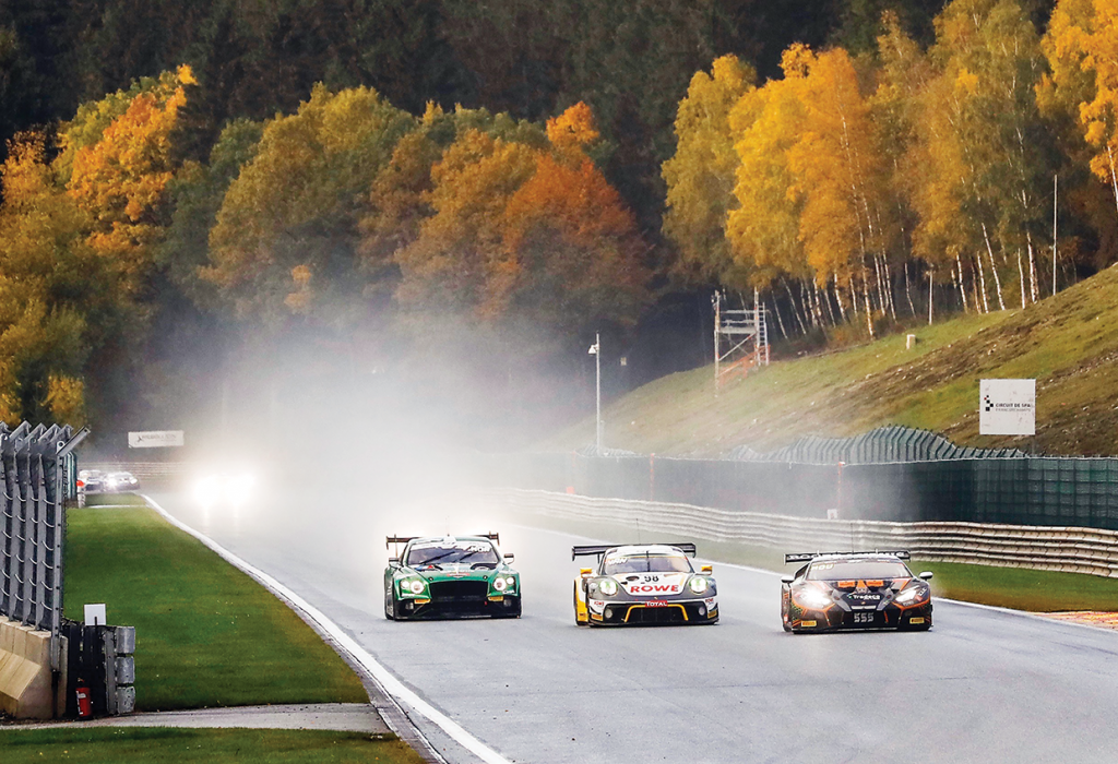 This year’s 24 Hours of Spa-Francorchamps saw more night running than ever before and was contested under difficult conditions, with changing weather typical of the region. Heavy rainfall resulted in a total of 18 full-course yellow periods and 14 safety car phases. In the close competition among the 55-strong GT3 grid fielded by 11 manufacturers, the lead spot changed almost by the hour. In the end, the top 10 finishers consisted of four Porsches, two Audis and one each from Ferrari, Mercedes-AMG, Honda Acura and Bentley.
