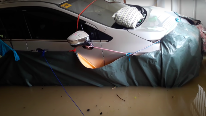 But for a quick-thinking car owner, saving his Mitsubishi Xpander meant making it float. And to do that, YouTube user Daddy M Castro thought of one ingenious solution — wrap the entire vehicle in water resistant canvas tarp.