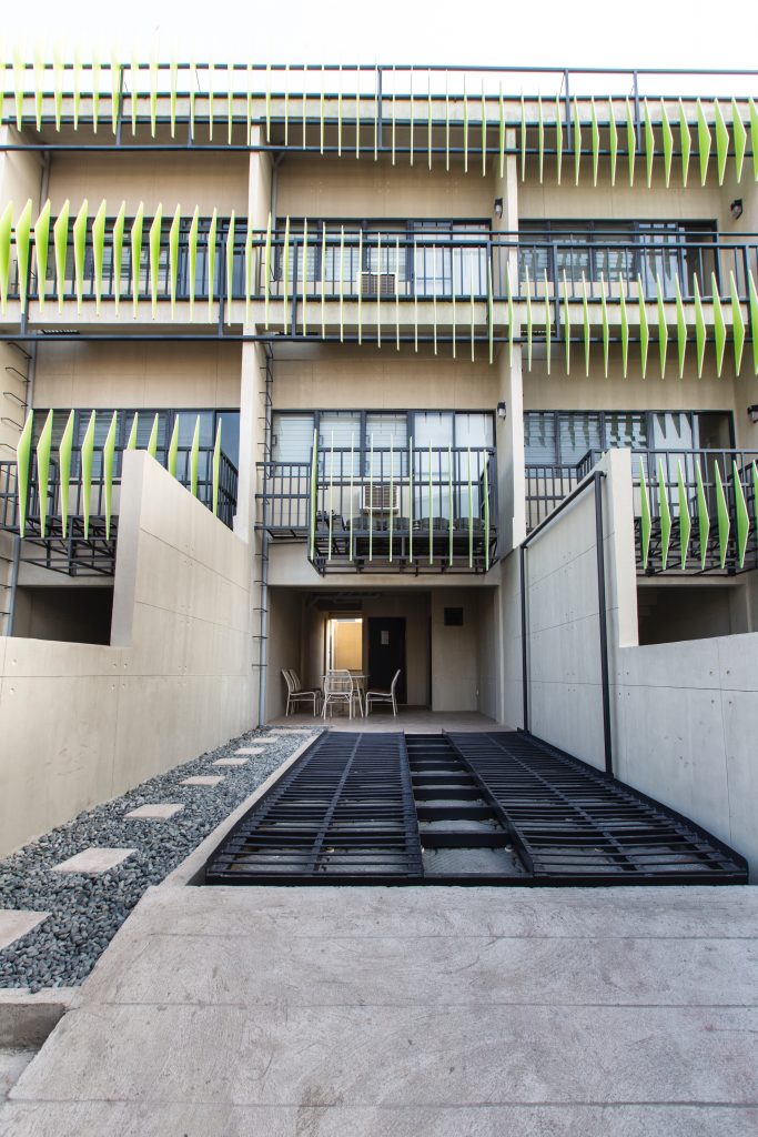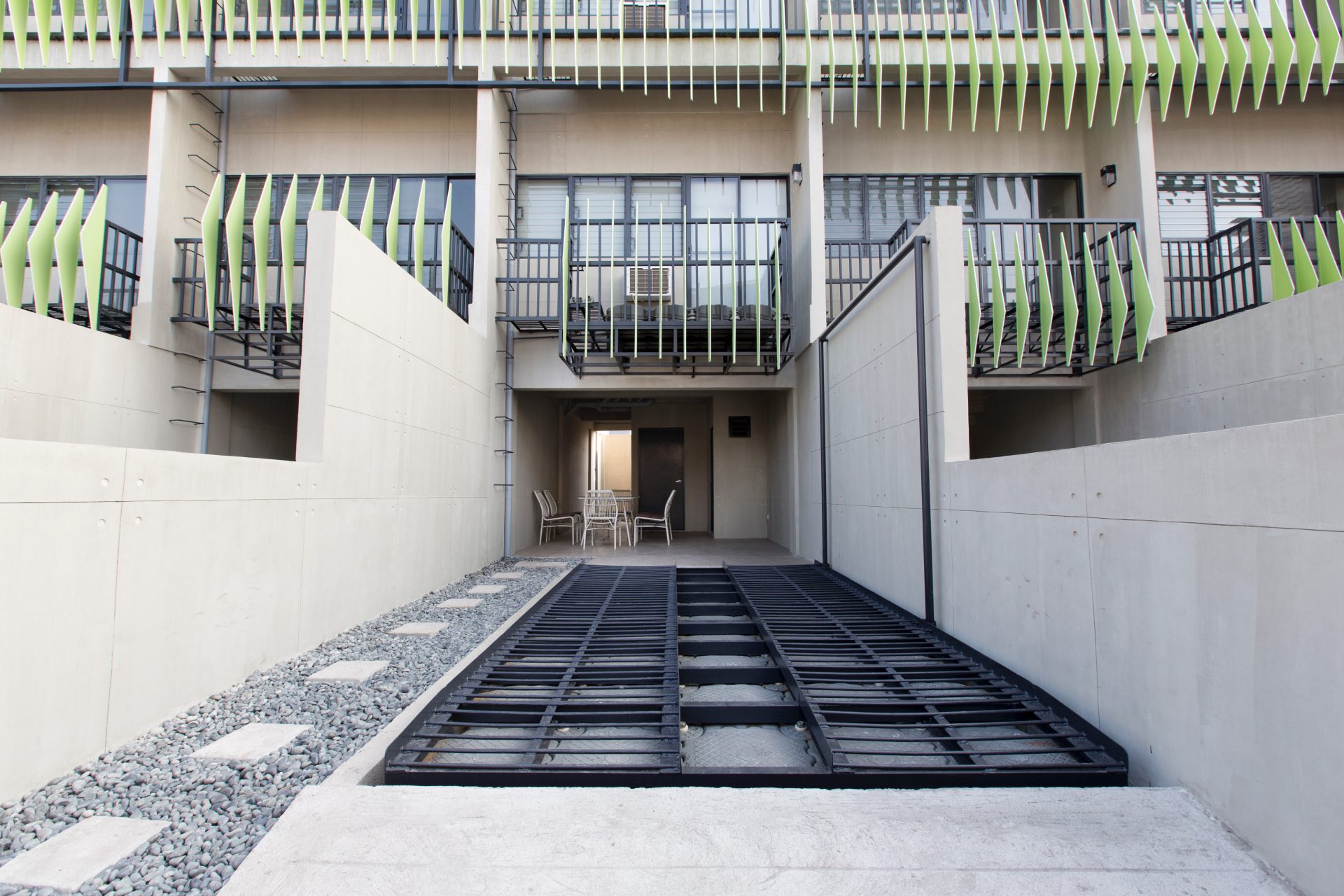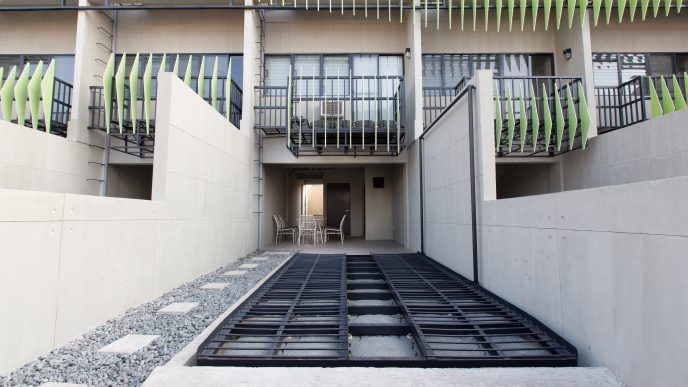 Yet its most ingenious feature is none other than a floatable car port. This features a ramp-like structure with high grade pontoons on the base. The car rests in a buoyant platform held securely in place by pontoons and guideposts. This will limit the movement to vertical only, gently moving up and down with the rise and ebb of the floodwaters. A smaller version of the carport called RAFT (Regenerative Amphibious Floating Terrace) is also installed at the terrace. It can be used as a makeshift boat if needed.