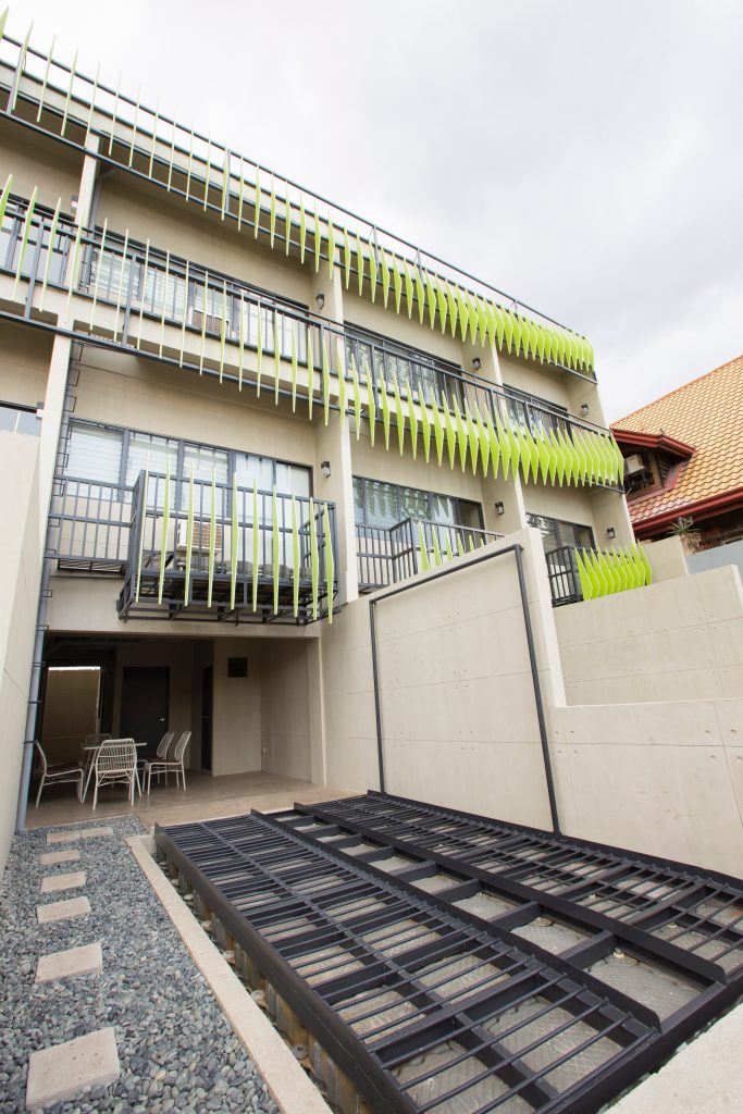 Buensalido Architects designed the three-story house and incorporated many flood-proof features. The house itself is raised 1.5 meters above street level. The entire structure was further elevated on stilts, so that the ‘main house’ (where the living-dining-kitchen spaces are all located) sits safely on the second and third floors. Up on the roof, solar panels were installed to provide back-up power in case of an outage.