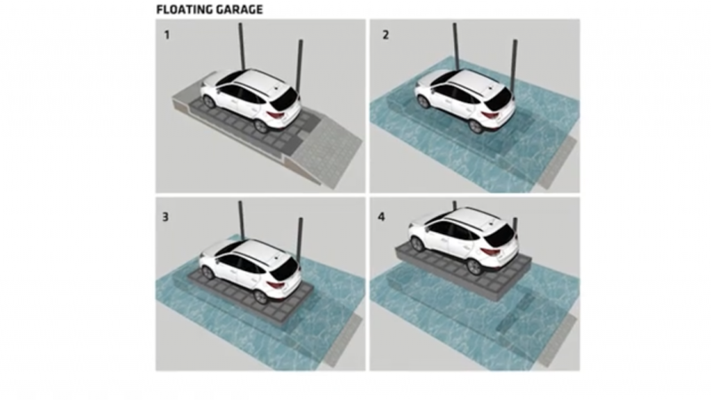“For this, we had two kinds of rafts, one in the balcony and one in the carport that allows it to float. In this case, it’s a raft that will allow your car to float in place,” Ar. Jason Buensalido explained during the program.