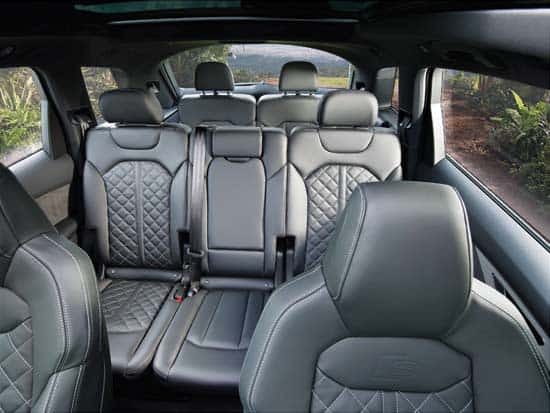 Behind the rear seat, the luggage compartment offers up to 2,050 liters of space, with a flat load area. All three rows of seats can be slid forward or backward individually, and the seatbacks can be reclined. Fitted as standard is an electrically operated tailgate. As a luxury SUV, the new Audi Q7 boasts of power-latching, soft-closing doors.