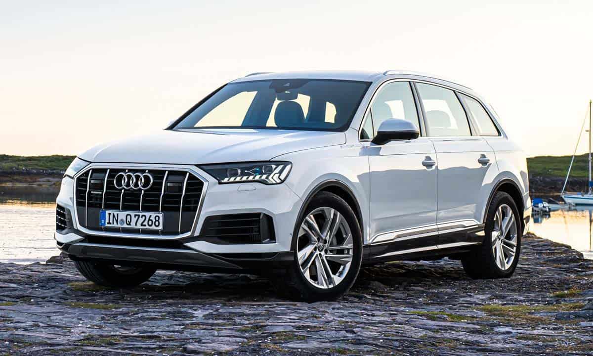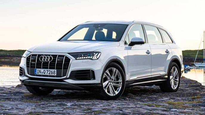 Included among the technological features of the latest Audi Q7 are a new digital operating system that has two large touchscreens providing haptic and acoustic feedback for their touch controls; the Audi virtual cockpit plus which has a high-resolution color information display; MMI navigation plus with MMI touch response; Parking Aid Plus with 360 display; a multifunction plus steering wheel with paddle shifters; a Bang & Olufsen premium audio system; an ambient LED lighting package; four-zone automatic air-conditioning; the Audi Music Interface in the rear seat; tire pressure monitoring; advanced traction and stability control systems; and numerous other driver-assist systems. Fitted as standard are an electrically operated tailgate with foot-gesture control, and power-latching, soft-closing doors.