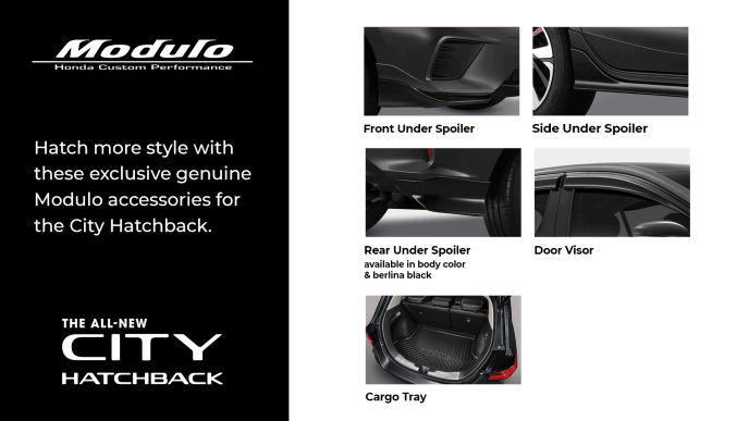 Modulo accessories for the all-new City Hatchback are now available at all 38 Honda Cars dealerships with the following suggested retail prices: