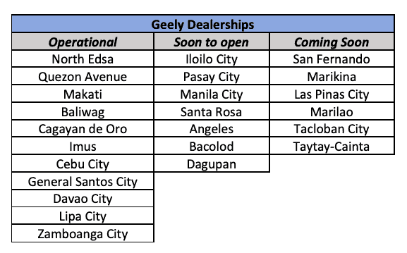 Despite this, Geely continues to sail through pandemic challenges as it beefs up its efforts not only to attain its sales targets but also to rapidly expand its dealer network to be able to cater to more customers all over the country. With 11 Geely dealerships already fully operational nationwide, 13 more are slated to open soon.