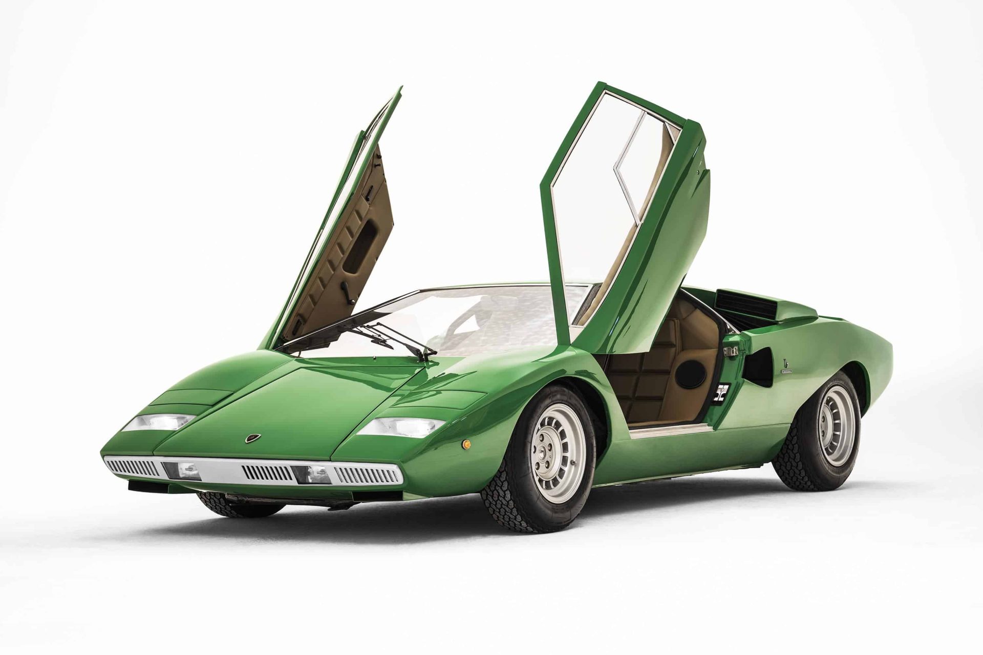 Low and wide, the front view of the Countach is characterized by diagonal lines on the hood, which are also repeated on the engine compartment, making it immediately recognizable even from a distance. The shape of the passenger compartment, low and squared, combined with the typical slope of the windscreen, influenced the design of the various models that have followed the Countach. It is precisely these shapes that have remained unchanged over the years, along with the particular and characteristic cut of the side windows, which make a Lamborghini easily identifiable at first glance.