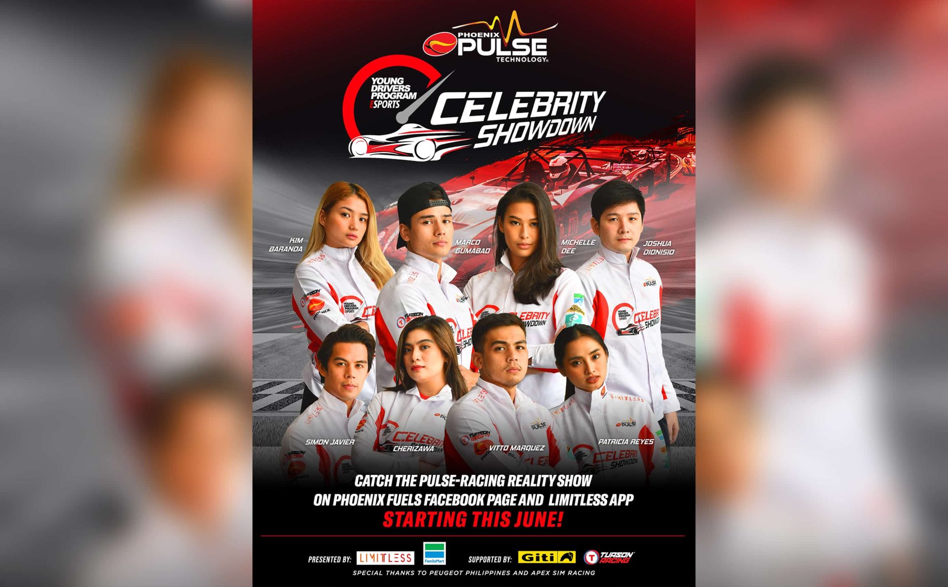 The Phoenix PULSE Young Driver’s Program-Celebrity Showdown is made possible through Phoenix Petroleum, LIMITLESS, FamilyMart, GITI-Philippines in cooperation with Clark International Speedway, and Apex Sim Racing, with special thanks to Peugeot Philippines and Tuason Racing.