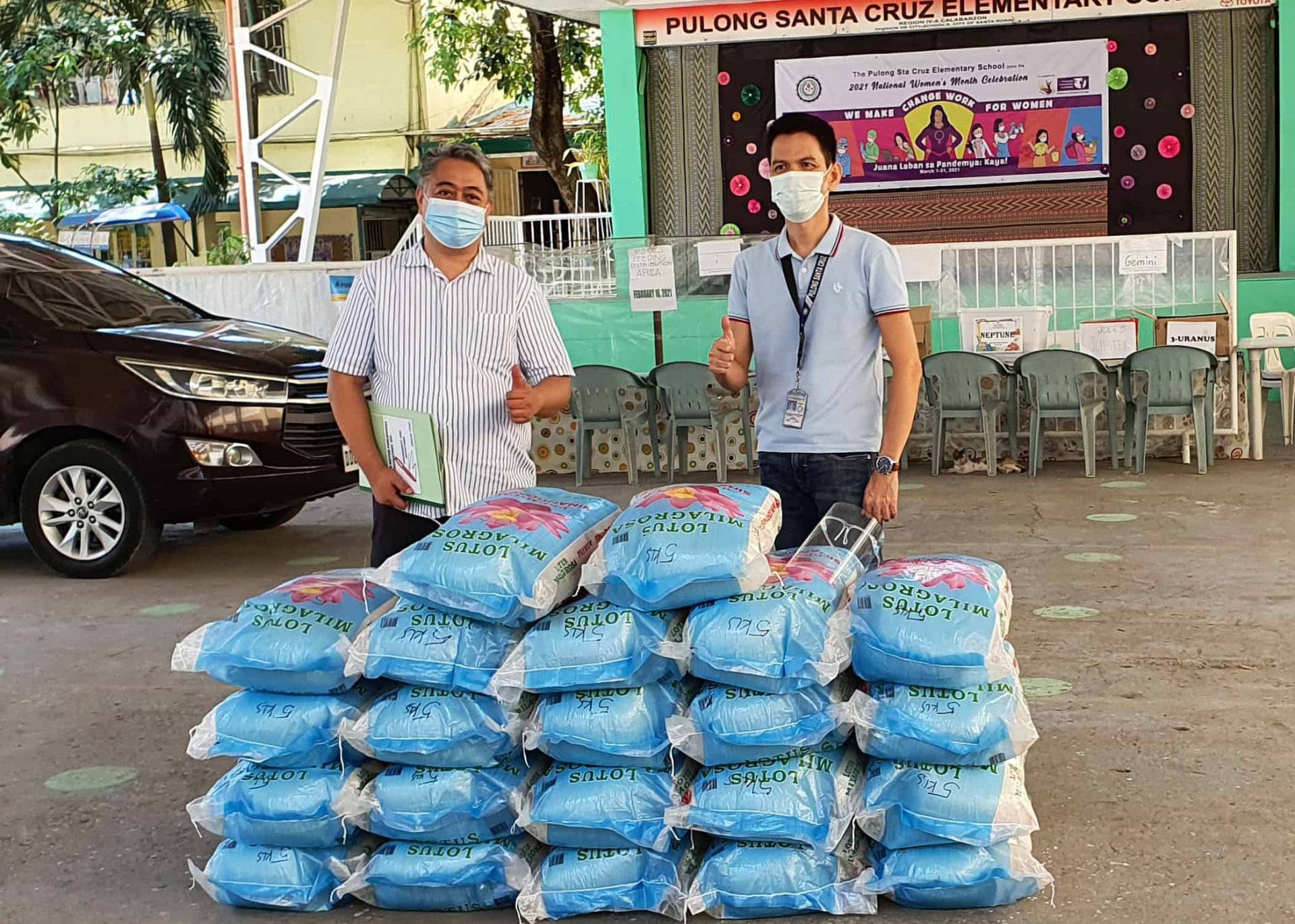 Among the beneficiaries are the 225 resident families in Barangay Pulong Santa Cruz, 108 faculty members and personnel of Pulong Santa Cruz Elementary School (PSCES), 158 families in the Toyota-City of Santa Rosa-Gawad Kalinga Village, and frontliners of the PNP Santa Rosa Sub-station. So far this year, TMPF has turned over 69 sacks of rice and 158 grocery bags to families and individuals.