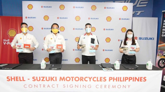 This partnership was confirmed last May in a signing agreement held at the Suzuki 3S Shop Roosevelt, Quezon City led by Pilipinas Shell Vice President and General Manager for Mobility Randy del Valle; Marketing Delivery Manager of Shell Mobility, Arvin Obmerga; Suzuki Philippines’ General Manager for Motorcycle Sales and Marketing Division, Jun Bulot and Suzuki’s Motorcycle’s Marketing Manager Nenuka Guba.