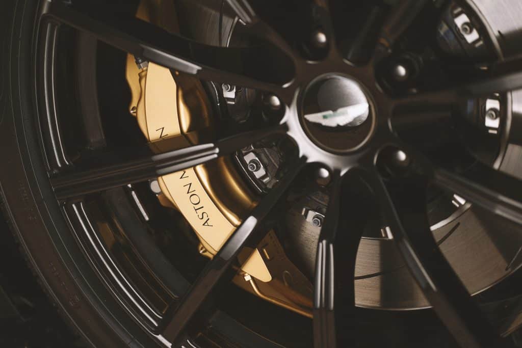 Unique side fender panels fixed with a saddle leather strap take design inspiration from the exposed aluminium bonnet and bonnet strap seen on the 1921 car. The hand polished panel has been painstakingly finished by Ecurie Bertelli, the leading specialist in pre-war Aston Martin models. Adding to this design is the engraved ‘No 3’ as a representation of the stamping seen on the original. Additionally, the exclusive specification also features a set of bronze brake calipers, representing the bronze detailing on ‘A3’, whilst also complementing the bespoke 20-Inch Lightweight Forged Gloss Black wheels.
