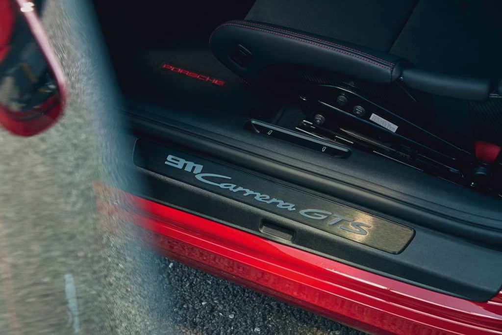All 911 GTS models effectively have the Sport Design package, with distinctive trim for the front, rear and the side sills. The headlight rims and daytime running light surrounds are darkened, and the car is fitted with standard LED headlights with Porsche Dynamic Light System Plus (PDLS Plus). The rear lights are unique to the GTS models.