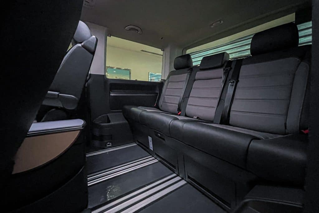 Inside, the Multivan Kombi comes with Nappa leather for that premium cabin vibe. Despite having a shorter 200mm wheelbase than its closest rival, the Hiace Super Grandia, the Multivan Kombi has a spacious cabin at the expense of fewer passengers. Of note, it can only accommodate seven passengers, with the second-row captain’s seats having a swivel function, which means business meetings on wheels are possible.