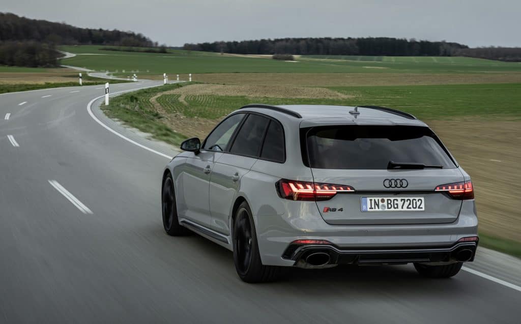 The latest Audi RS 4 Avant’s front end is completely new, having a wider and flatter Singleframe grille with a three-dimensional honeycomb structure in gloss black—typical for the RS model series. Also new are the more aggressively contoured LED headlights with dynamic turn signals; the large air inlets in the bumper with vertical flaps; and the narrow slit above the Singleframe that calls to mind the vents of the original Audi Sport Quattro.