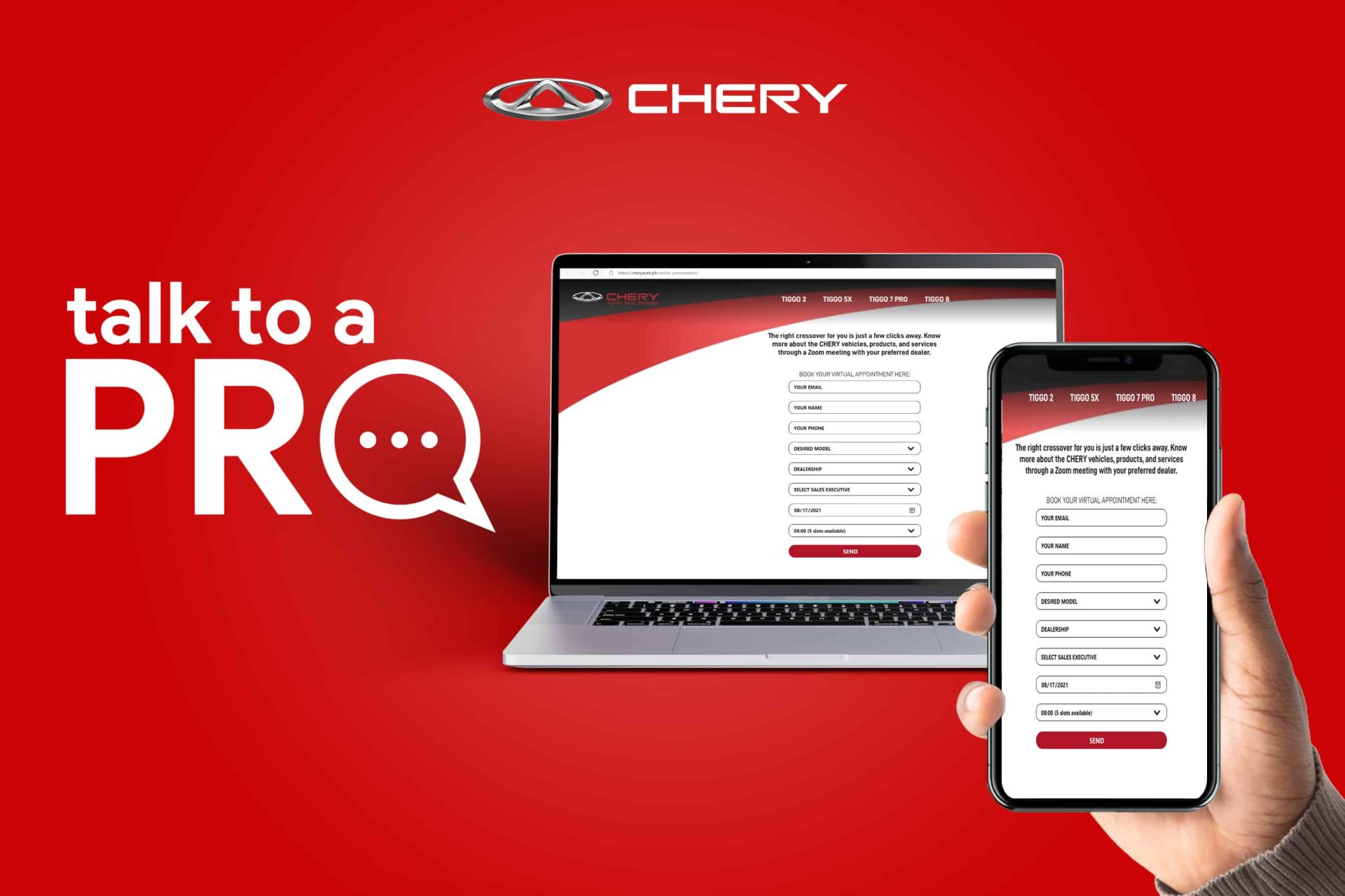 Customers can now easily ask questions and concerns—like product features, after-sales inquiries, and financing options—to a CHERY sales professional and get immediate answers over a safe and convenient Zoom session.