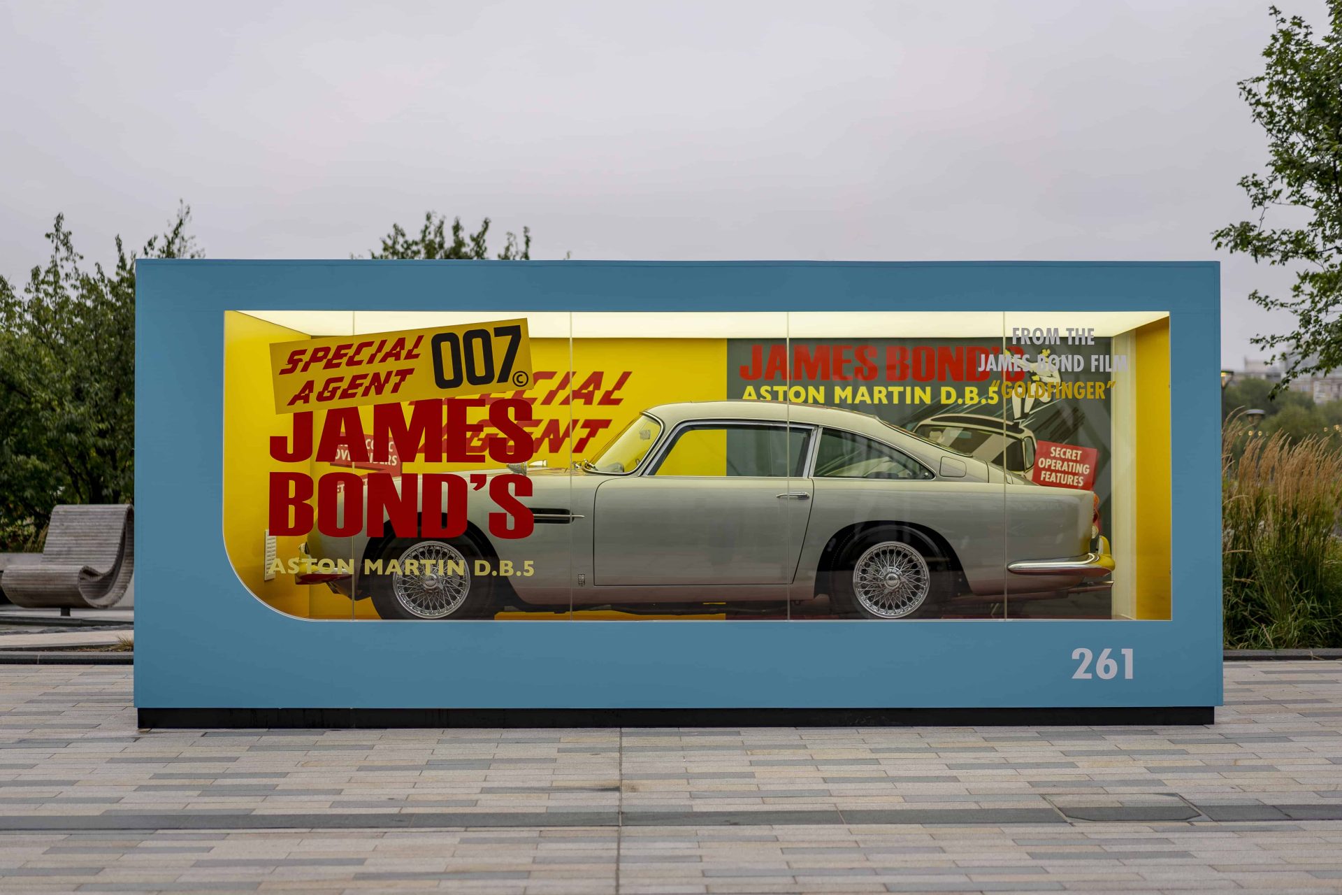 The full-size replica Corgi DB5 box will be on display at Battersea Power Station for the general public to see until Oct. 1, 2021.