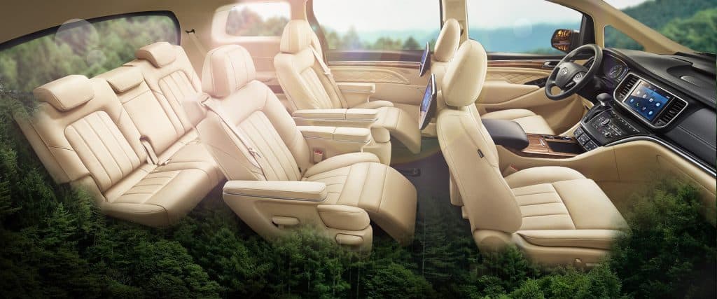 At the front row is a modern design with a three-zone climate control, 10-inch screen with Bluetooth, hands-free phone control, 8-speaker Harman-Kardon system, and air purification system.