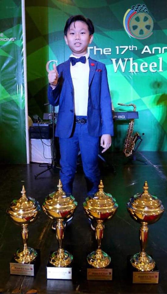 At just 9 years old, Axel already has a sizable amount of trophies in his room, on top of the toy cars he has. At the recently concluded 17th Golden Wheel Awards, he received trophies for being the 2019 Petron Karting Academy Overall Champion, 2019 Honda Cadet Novice Overall 1st Runner-Up, 2019 Honda Cadet Karter of the Year, and the 2020 Minirok Overall Champion. Note that in all competitions, he’s usually racing against other junior drivers that are older than him.