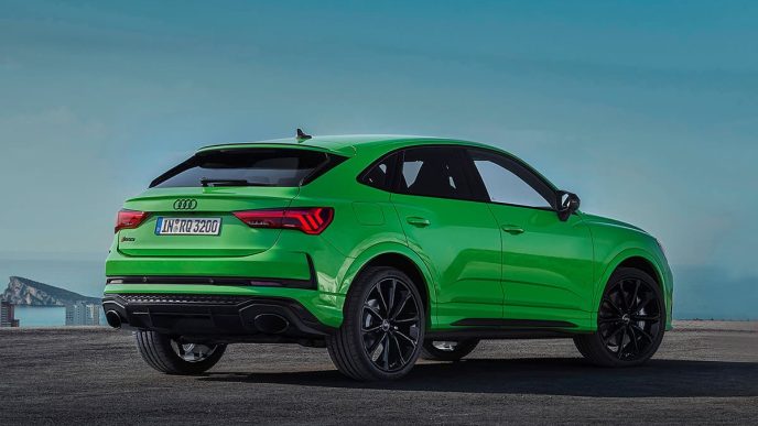 Also combining outstanding performance with practicality is the 2022 Audi RS Q3 Sportback. The model’s RS genes are apparent in its wide Singleframe grille, RS front bumper with large side air inlets and striking boomerang-shaped blades, the flat slits near the hood, RS-specific roof edge spoiler, RS exhaust system with large oval tailpipes, and RS-specific bumper with rear diffuser. The model’s flared wheel arches also pay homage to those on the Ur-Quattro.