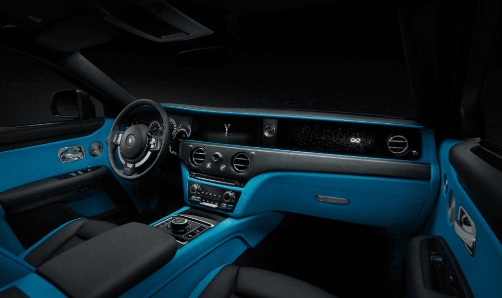 The timepiece is flanked by a world-first Bespoke innovation that debuted with Ghost: the Illuminated Fascia, which displays an ethereal glowing Lemniscate, surrounded by more than 850 stars. Located on the passenger side of the dashboard, the constellation and motif are completely invisible when the interior lights are not in operation. As in Ghost, the Lemniscate motif is illuminated via 152 LEDs mounted above and beneath the fascia, each meticulously colour-matched to the cabin’s clock and instrument dial lighting. To ensure the Lemniscate is lit evenly, a 2mm-thick light guide is used, featuring more than 90,000 laser-etched dots across the surface. This not only disperses the light evenly but creates a twinkling effect as the eye moves across the fascia, echoing the subtle sparkle of the Shooting Star Starlight Headliner.