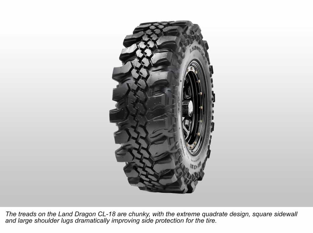 There is no mistaking that this professional grade tire is made for serious off-roading on 4×4 SUVs.  One look and you’ll know it can’t possibly be legal for use on ordinary roads. The aggressive, all-terrain look is specially made for roughing it. The treads on the Land Dragon CL-18 are chunky, and there is no mistaking that they are meant to go through mud and rocks.