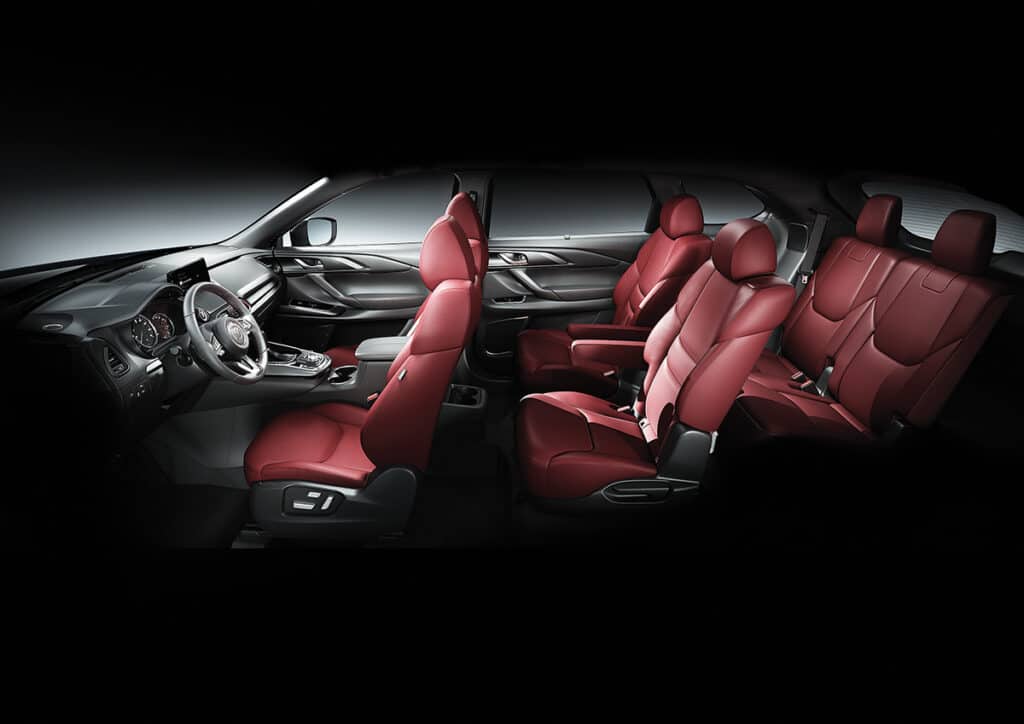Beautiful Burgundy interior and Black alloy wheels (inset) of the Mazda CX-9 Black Edition