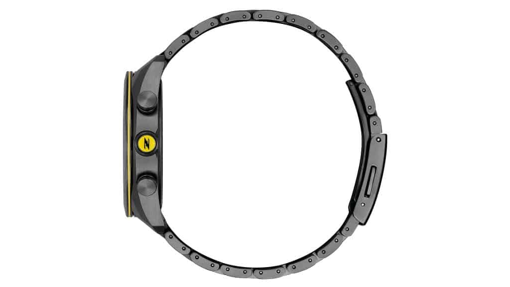 Each of the Citizen Nissan Fairlady Z watches comes with distinct design elements. The AT8185-89E features accents in the Nissan Z Ikazuchi Yellow body color, contrasting with the all-black case, band, dial, hands, and indexes. Ikazuchi, which translates to thunderbolt, is the main theme here. The dial comes with the same yellow dots found on the seats of the Nissan Z Proto.