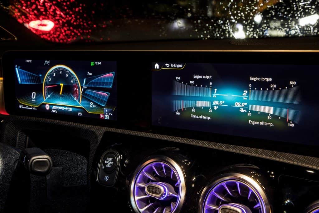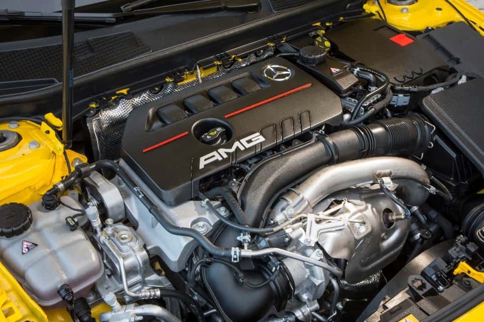 The Mercedes-AMG A 35 is powered by a 2.0 liter turbocharged four-cylinder engine producing 306hp and 400Nm of torque managed by an AMG suspension and AMG SPEEDSHIFT DCT 7-Speed transmission allowing for optimal driving dynamics. This combination results that the A 35 promises to deliver a sporty and exciting drive.