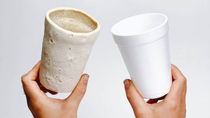 - Chitofoam by Charlotte Böhning & Mary Lempres (Dual USA – Germany and Dual USA – Norway / Based in USA)A biodegradable packaging solution derived from the exoskeletons of mealworms that have digested polystyrene foam waste.