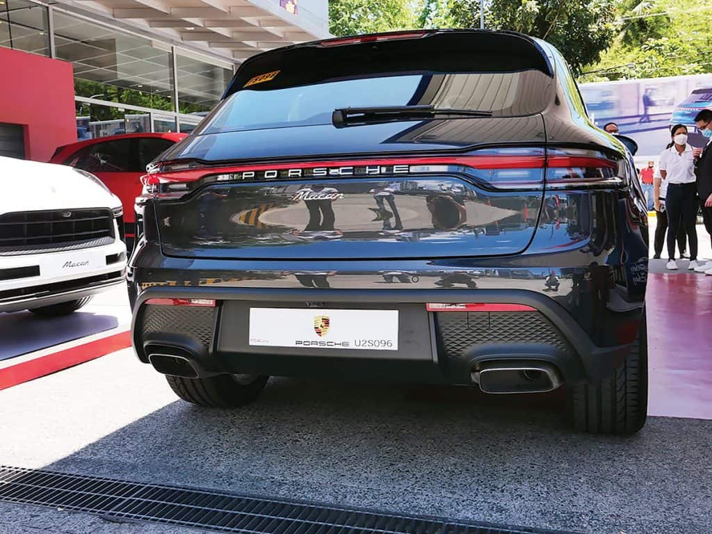 The new Porsche Macan is, obviously, said to be the best of its kind – perhaps a fitting sendoff before the vehicle sheds its taste for fossil fuel. It gets a recast nose, with an inlay in body color meant to visually widen the SUV. The front fascia gets a new set of eyes – LED headlights with the Porsche Dynamic Light System (PDLS). According to Porsche, the feature “increases safety when driving and enhances near-field, lateral, and far-field illumination by adjusting the range of the dipped beam according to driving speed. Additionally, the dynamic cornering light function rotates the main headlights towards the inside of a road’s curve based on the driver’s speed and steering angle. Static cornering lights turn on the auxiliary headlights for clearer visibility on tight, turning roads.” Porsche Brand Ambassador Bryan Ellamil showed how the trademark four-point lighting has been reworked into four illuminated “dashes,” as in the Taycan.