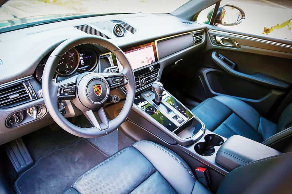 Porsche leverages its 911 legend by using some design cues for the Macan – such as a centrally positioned rev counter on the instrument cluster. An analog clock, another classic Porsche design element, takes its hallowed place at the heart of the dash. The redesigned center console now uses touch controls instead of buttons, and continues to offer many online functions and services as standard. The user can access these functions via the 10.9-inch full HD touch display of the Porsche Communication Management.