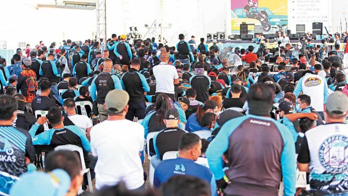 The Angkas whole-day fiesta was celebrated by about 3,000 attendees; and it was held at the Angkas headquarters in Cainta, Rizal. The day’s activities included everything from a free Service Campaign Refresher Course seminar for the riders, a medical mission, booths that offered free haircuts and free massages all day, to a motorcycle safety and skills showcase via an on-site Gymkhana course. It also featured a bazaar that sold food items, clothing, a plethora of motorcycle parts and accessories, and of course, helmets and riding gear.