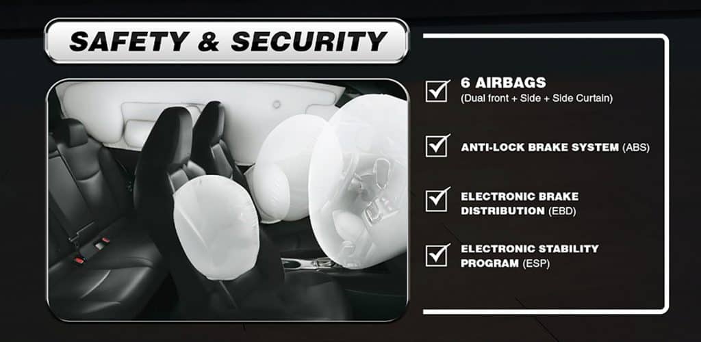 The all-new Thunder 2.0 is built with the latest Electronic Stability Program (ESP) and Antilock Braking System (ABS) from the world leader, Bosch. It has a total of 6 airbags comprising front, side, and side curtain airbags.