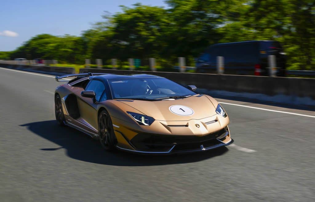 Serving as the lead car during the Bull Run is a very special Lamborghini Aventador SVJ Roadster.