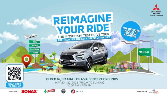 Reimagine Your Ride: The Mitsubishi Test Drive Tour will start in Manila on May 20, Friday at SM Mall of Asia’s Block 16 Concert Grounds. A limited edition gift awaits the first 150 individuals who will pre-register at Mitsubishi Motors’ official website. Other treats from the brand and its sponsors, Caltex, SONAX, Little Trees as well as Overland Kings, are also in store and can be enjoyed by the whole family. Apart from getting the chance to test drive the New Xpander, customers can also avail of the PHP 98K low down payment scheme for the GLS Automatic variant during their visit.