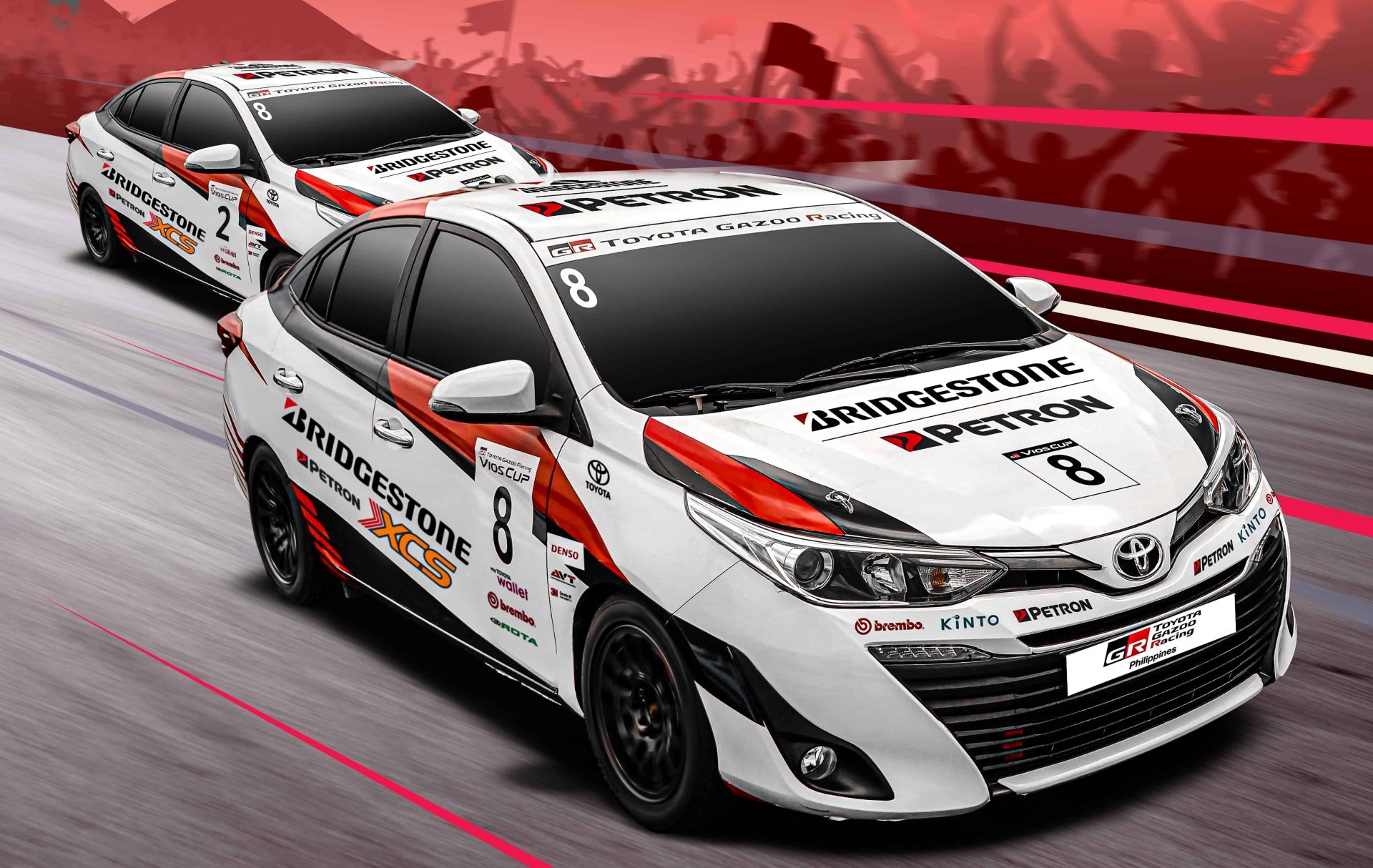 Toyota Gazoo Racing Vios Cup is organized in cooperation with Bridgestone and Petron, and is supported by Brembo, Denso, OMP, Tuason Racing, AVT, 3M, ROTA, My Toyota Wallet, and Kinto One.