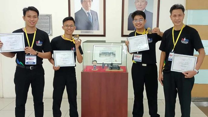This year’s wins earned TMP Tech its fourth and fifth gold medals in the same competition since it first joined in 2015. In photo are gold medalists Gamoza (2nd from left) and Cervo (2nd from right) with their TMP Tech instructors and coaches.