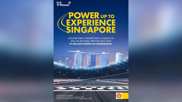 For every PHP 2,000 purchase of Shell V-Power for 4-wheelers or PHP 250 for 2-wheelers, customers will receive one (1) raffle coupon for a chance to win an all-expense-paid trip for two to Singapore with round-trip airfare tickets, hotel accommodations, and a curated Singapore experience equivalent to PHP 1,000,000 which includes PHP 800,000 pocket money and PHP 200,000 worth of tours, food, and entertainment.