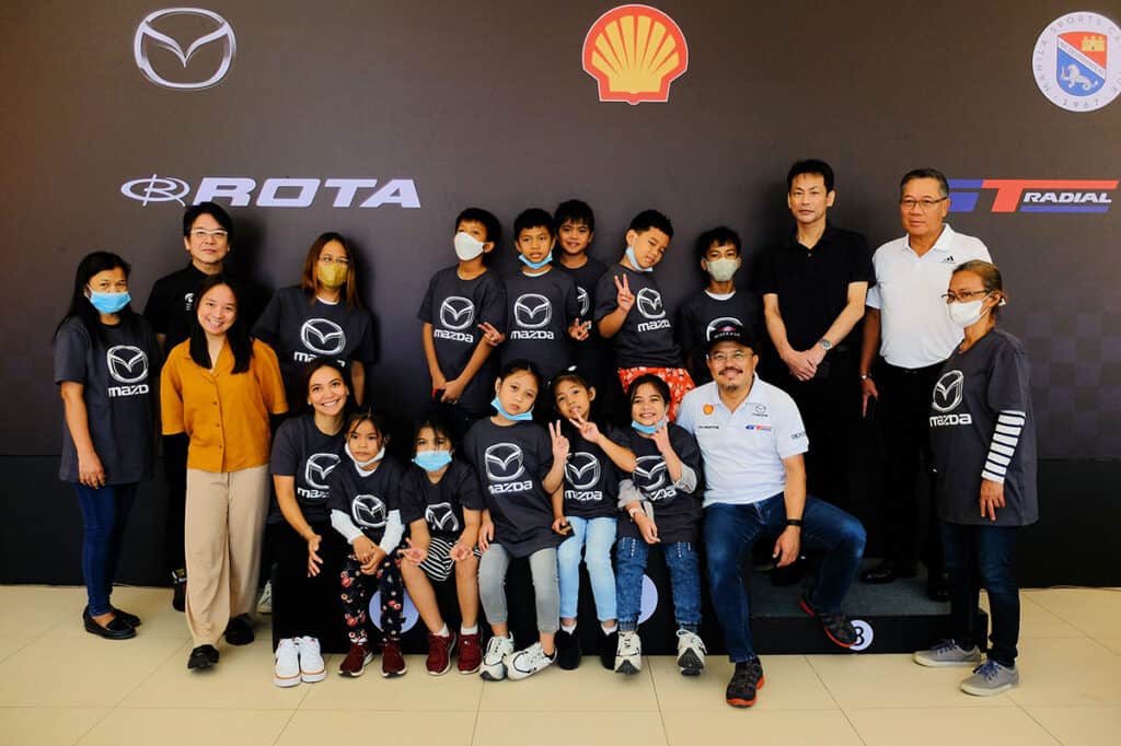 Children from Duyan Ni Maria Children’s Home in Mabalacat, Pampanga were given joyrides on the track aboard the Mazda MX-5 Spec Series racecars. With them are Mazda officials led by Mazda Philippines president Steven Tan (seated) and Bermaz Executive Chairman Datu Sri Ben Yeoh Choon San (standing, white shirt).