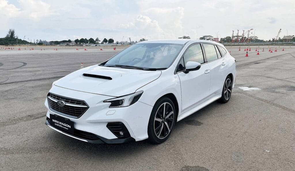 The Subaru WRX wagon at the driving grounds of the Changi Exhibition Center