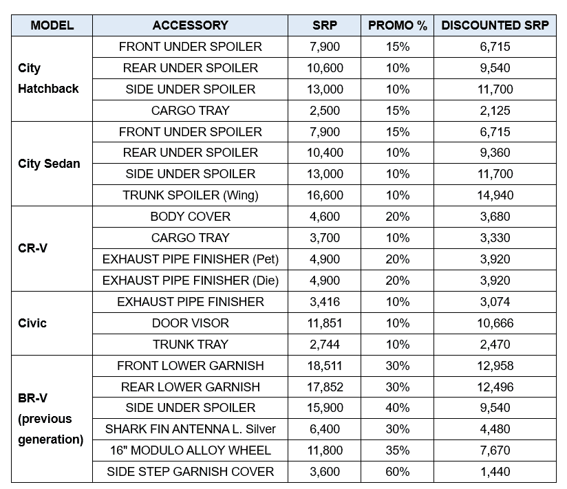 Customers may avail up to 60% discount on select Honda Genuine Accessories until February 28, 2023.