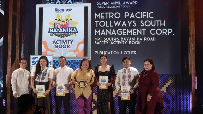 Through the years, MPT South has bagged the following Anvil Awards: Silver Anvil for Drayberks (2019), a social advocacy promoting road safety; Silver Anvil for Sights of South (2020), a corporate calendar promoting tourism in MPT South’s toll road network; Silver Anvil for the Silang East Interchange Opening PR Campaign (2021); and now for 2022, Silver Anvil for the Bayani Ka Activity Book.