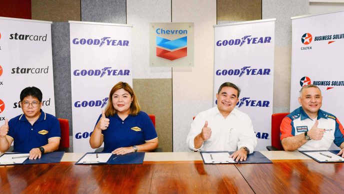 Chevron Philippines Inc. (CPI), marketer of Caltex brand of fuels and lubricants, opened the new year with a new partner. Chevron recently signed a partnership with Goodyear Philippines Inc. to add a new benefit to the Caltex StarCard — a discount on Goodyear consumer tires.